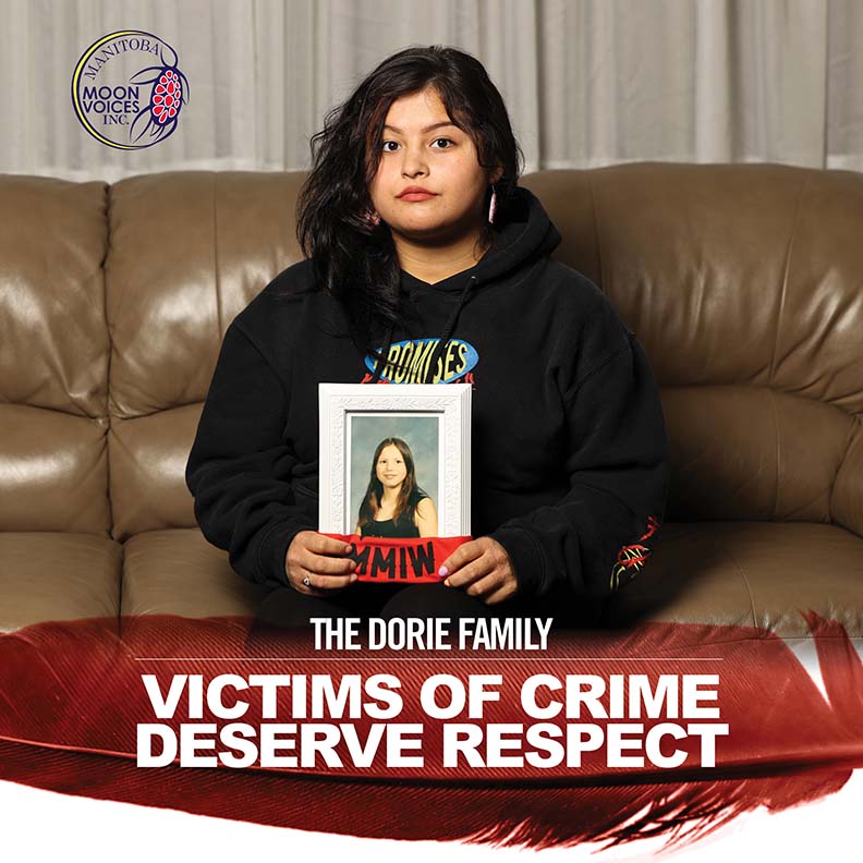 The Dorie family lost a loved one and wants to see a justice system that respects Indigenous Peoples. Manitoba Moon Voices Inc. and the Dorie family want to see the following call to justice fulfilled immediately. Call for Justice 9.2 We call upon all actors in the justice system, including police services, to build respectful >>